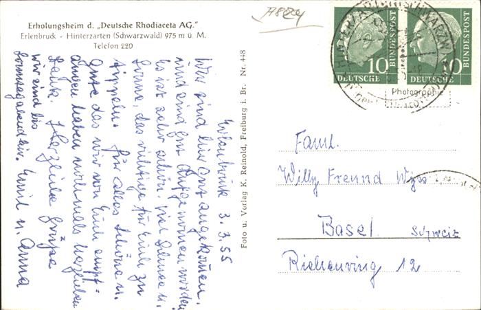 41391613 Hinterzarten Breisgau-Hochschwarzwald BW Erholungsheim Rhodiaceta AG Erlenbruck postalisch nicht gelaufen gute Erhaltung Alte Ansichtskarte Postkarte hz_W Katcode 11110008315052