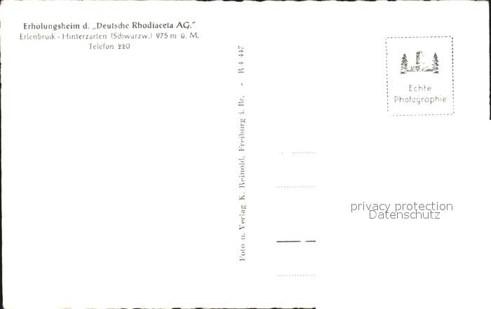 72466843 Hinterzarten Breisgau-Hochschwarzwald BW Erlenbruck Erholungsheim Deutsche Rhodaceta AG postalisch nicht gelaufen Erhaltung siehe scans KatCode: 11110008315052