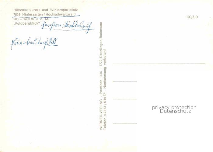 72654370 Hinterzarten Breisgau-Hochschwarzwald BW Feldbergblick postalisch nicht gelaufen Erhaltung siehe scans [WerneD78] KatCode: 11110008315052