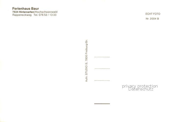 73870534 Hinterzarten Breisgau-Hochschwarzwald BW Ferienhaus Baur postalisch nicht gelaufen Erhaltung siehe scans [WerneD78] Wern Katcode 11110008315052