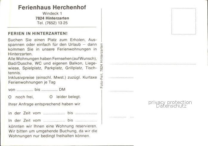 72254285 Hinterzarten Breisgau-Hochschwarzwald BW Ferienhaus Herchenhof Schwarzwald postalisch nicht gelaufen Erhaltung siehe scans KatCode: 11110008315052