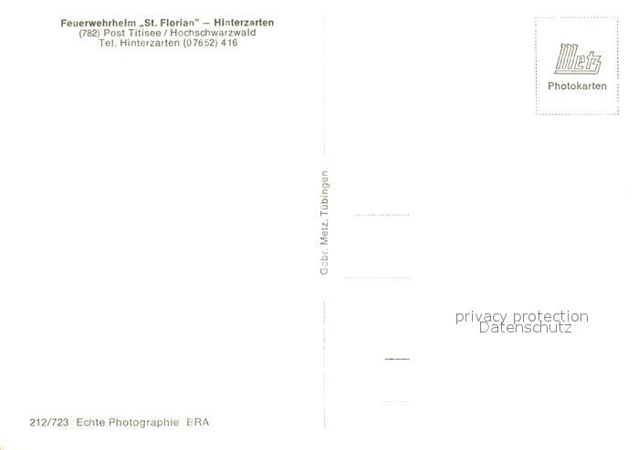 73092960 Hinterzarten Breisgau-Hochschwarzwald BW Feuerwehrheim St. Florian postalisch nicht gelaufen Erhaltung siehe scans [NatalD47] KatCode: 11110008315052