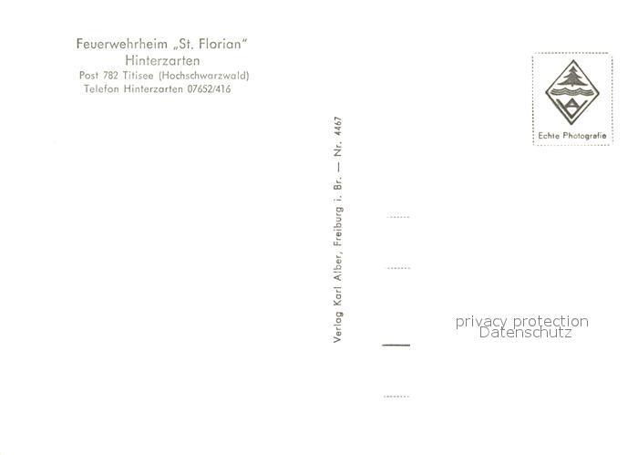 73092958 Hinterzarten Breisgau-Hochschwarzwald BW Feuerwehrheim St. Florian postalisch nicht gelaufen Erhaltung siehe scans [NatalD47] KatCode: 11110008315052
