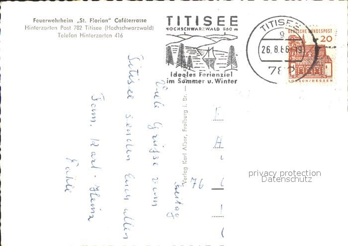 71838053 alte Postkarte Hinterzarten Breisgau-Hochschwarzwald BW Feuerwehrheim St Florian Cafeterrasse postalisch gelaufen Erhaltung siehe scans KatCode: 11110008315052