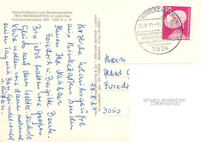 73010079 alte Postkarte Hinterzarten Breisgau-Hochschwarzwald BW Fliegeraufnahme postalisch gelaufen Erhaltung siehe scans [WerneD78] KatCode: 11110008315052