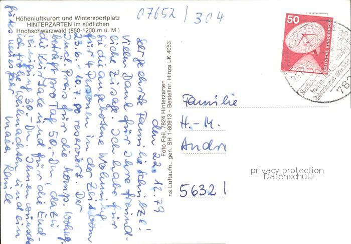 72466903 alte Postkarte Hinterzarten Breisgau-Hochschwarzwald BW Fliegeraufnahme postalisch gelaufen Erhaltung siehe scans KatCode: 11110008315052