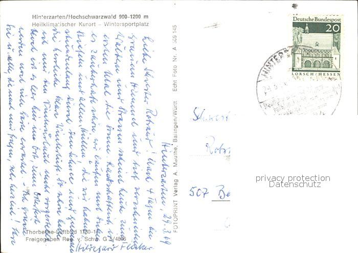 72431486 alte Postkarte Hinterzarten Breisgau-Hochschwarzwald BW Fliegeraufnahme postalisch gelaufen Erhaltung siehe scans KatCode: 11110008315052