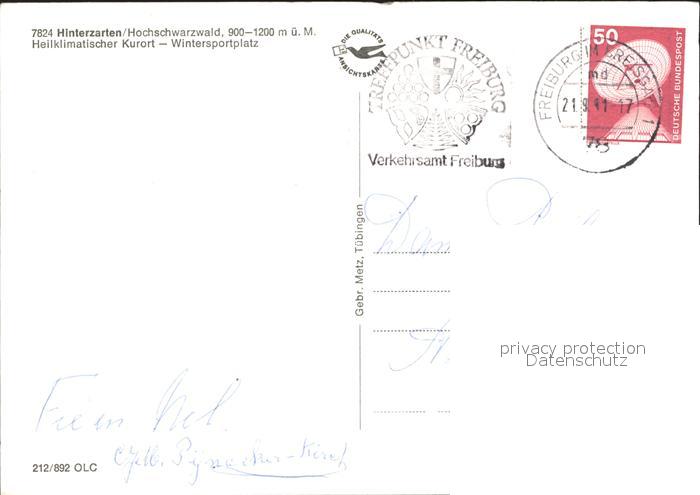 72389868 alte Postkarte Hinterzarten Breisgau-Hochschwarzwald BW Fliegeraufnahme postalisch gelaufen Erhaltung siehe scans KatCode: 11110008315052