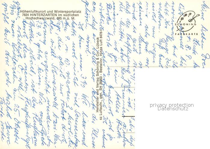 73101141 alte Postkarte Hinterzarten Breisgau-Hochschwarzwald BW Fliegeraufnahme postalisch gelaufen Erhaltung siehe scans [WerneD78] KatCode: 11110008315052