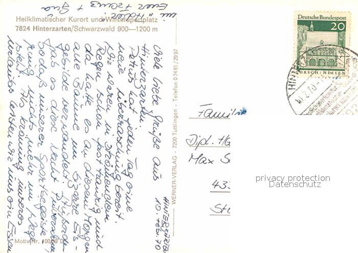 72846083 alte Postkarte Hinterzarten Breisgau-Hochschwarzwald BW Fliegeraufnahme im Winter postalisch gelaufen Erhaltung siehe scans [LiesaD40] KatCode: 11110008315052