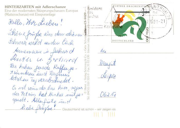 73904208 Hinterzarten Breisgau-Hochschwarzwald BW Fliegeraufnahme mit Adlerschanze postalisch gelaufen Erhaltung siehe scans [WerneD78] alte Postkarte Wern Katcode 11110008315052