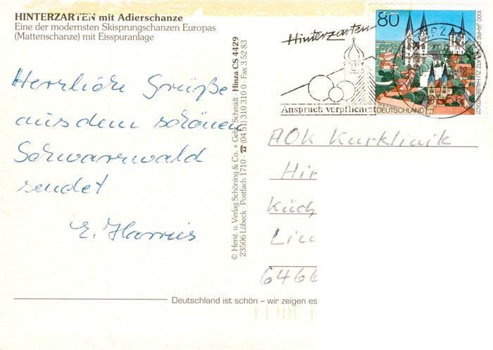 73904539 Hinterzarten Breisgau-Hochschwarzwald BW Fliegeraufnahme mit Adlerschanze postalisch gelaufen Erhaltung siehe scans [WerneD78] alte Postkarte Wern Katcode 11110008315052
