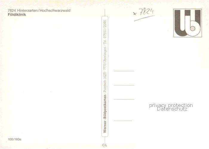72888948 Hinterzarten Breisgau-Hochschwarzwald BW Foeldiklinik postalisch nicht gelaufen Erhaltung siehe scans [AndreD76] KatCode: 11110008315052