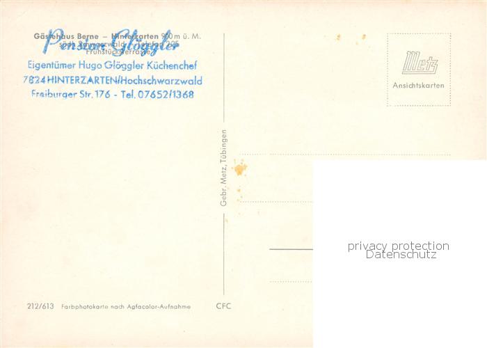 73844716 Hinterzarten Breisgau-Hochschwarzwald BW Gaestehaus Berne Gaststube postalisch nicht gelaufen Erhaltung siehe scans [WerneD78] Wern Katcode 11110008315052