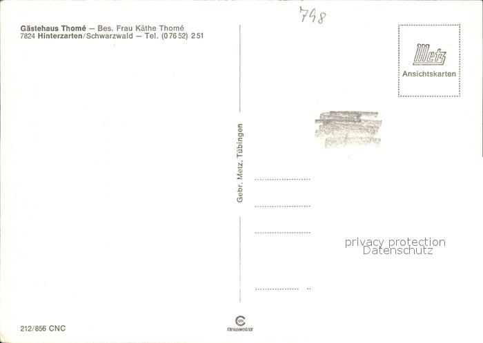 72606700 Hinterzarten Breisgau-Hochschwarzwald BW Gaestehaus Thome postalisch nicht gelaufen Erhaltung siehe scans [NatalD47] KatCode: 11110008315052