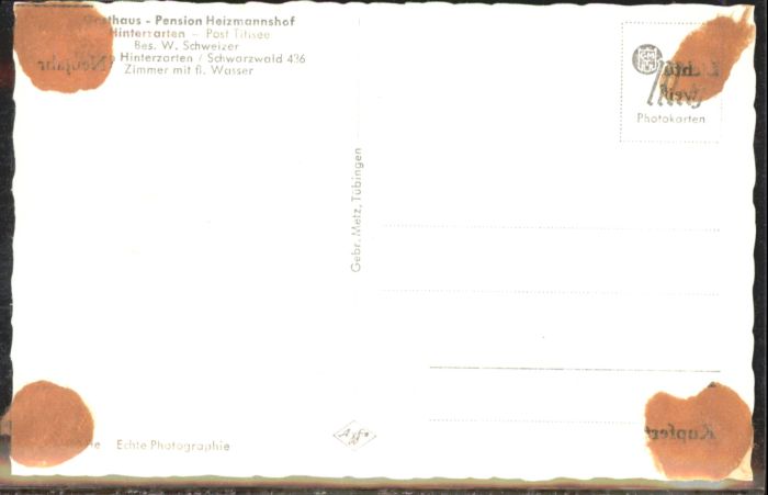 40807289 Hinterzarten Breisgau-Hochschwarzwald BW Gasthaus Pension Heizmannshof postalisch nicht gelaufen Alte Ansichtskarte Postkarte Katcode 11110008315052