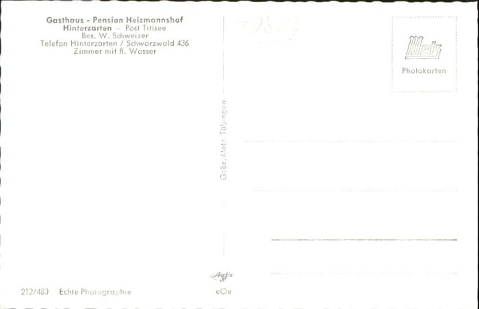 40769768 Hinterzarten Breisgau-Hochschwarzwald BW Gasthaus Pension Heizmannshof postalisch nicht gelaufen Alte Ansichtskarte Postkarte Katcode 11110008315052