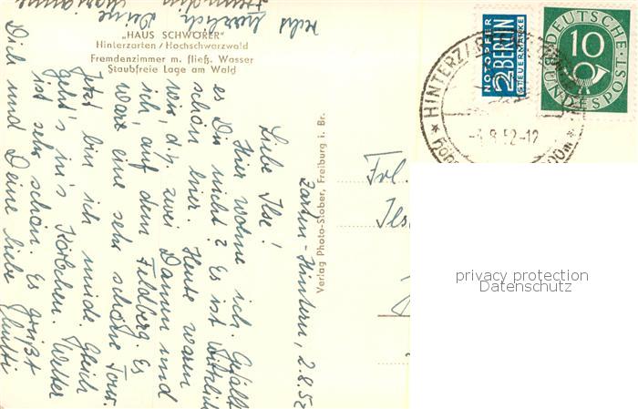 73820561 Hinterzarten Breisgau-Hochschwarzwald BW Haus Schwoerer postalisch gelaufen Erhaltung siehe scans [WerneD78] alte Postkarte Wern Katcode 11110008315052