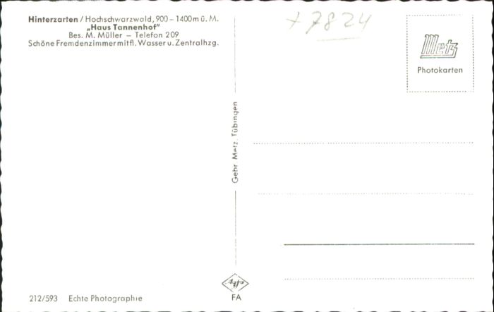 40769807 Hinterzarten Breisgau-Hochschwarzwald BW Haus Tannenhof postalisch nicht gelaufen Alte Ansichtskarte Postkarte Katcode 11110008315052