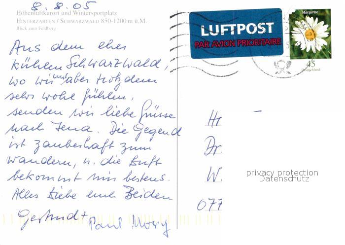 72692300 alte Postkarte Hinterzarten Breisgau-Hochschwarzwald BW Hoehenluftkurort Wintersportplatz Feldberg Schwarzwald postalisch gelaufen Erhaltung siehe scans [FriedD77] KatCode: 11110008315052