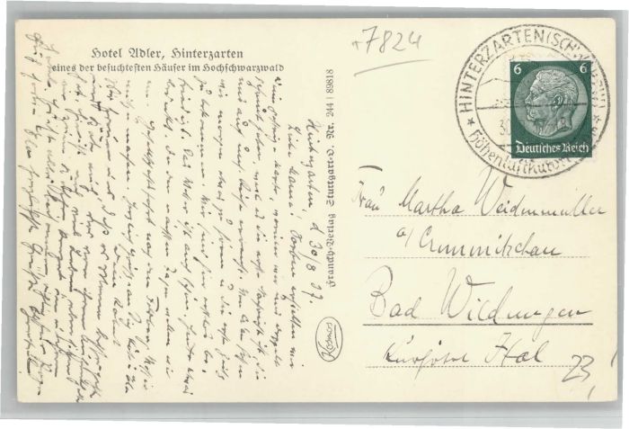40741326 Hinterzarten Breisgau-Hochschwarzwald BW Hotel Adler postalisch gelaufen Alte Ansichtskarte Postkarte alte Postkarte Katcode 11110008315052