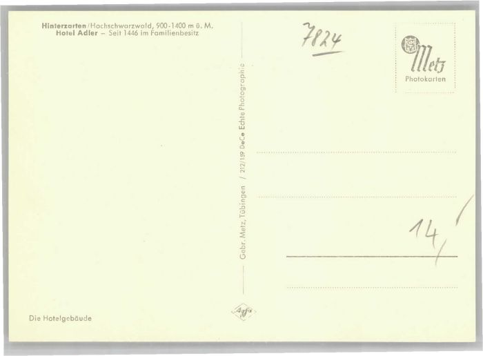 40741314 Hinterzarten Breisgau-Hochschwarzwald BW Hotel Adler postalisch nicht gelaufen Alte Ansichtskarte Postkarte Katcode 11110008315052