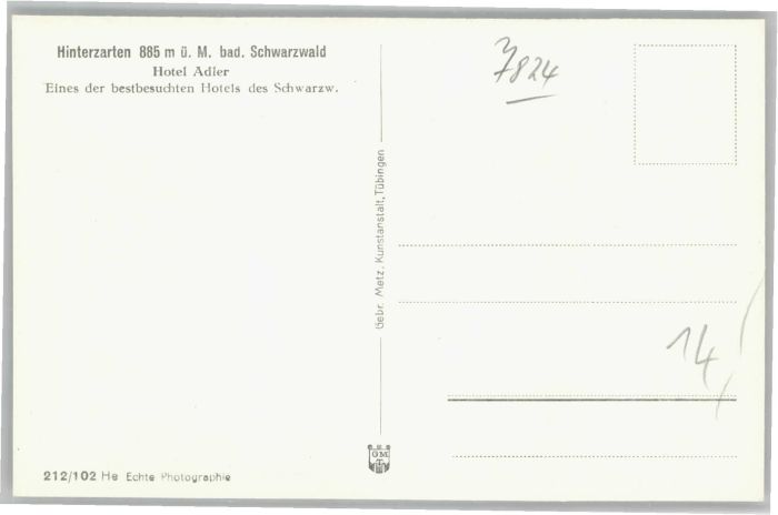 40728992 Hinterzarten Breisgau-Hochschwarzwald BW Hotel Adler postalisch nicht gelaufen Alte Ansichtskarte Postkarte Katcode 11110008315052
