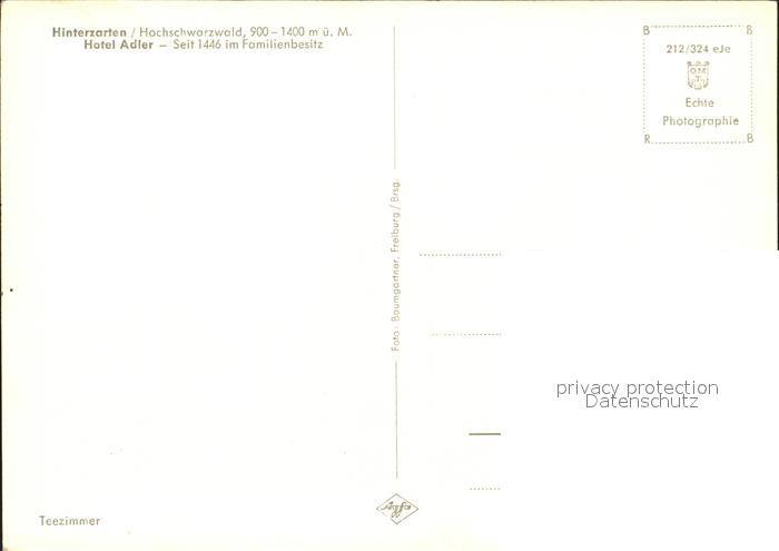 72046712 Hinterzarten Breisgau-Hochschwarzwald BW Hotel Adler Kaminzimmer postalisch nicht gelaufen Erhaltung siehe scans KatCode: 11110008315052