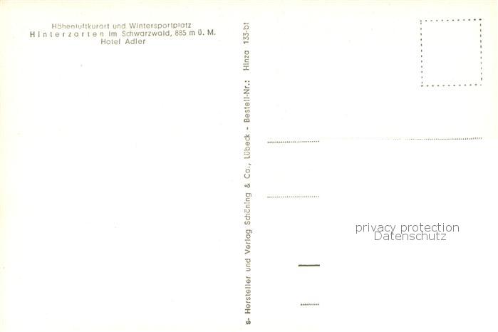73760878 Hinterzarten Breisgau-Hochschwarzwald BW Hotel Adler Kirchturm postalisch nicht gelaufen Erhaltung siehe scans [WerneD78] Wern Katcode 11110008315052