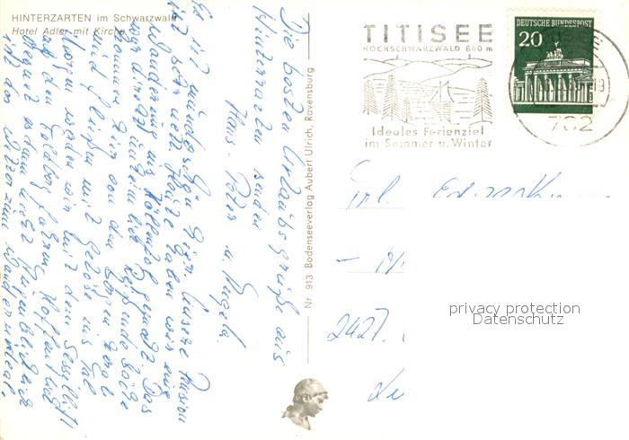 73168525 alte Postkarte Hinterzarten Breisgau-Hochschwarzwald BW Hotel Adler mit Kirche postalisch gelaufen Erhaltung siehe scans [WerneD78] KatCode: 11110008315052