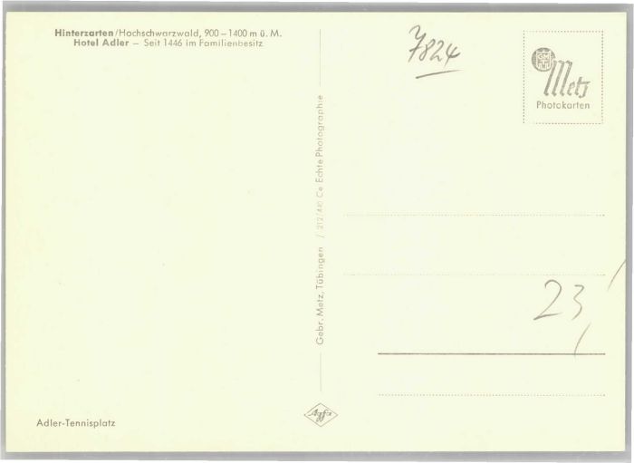 40741327 Hinterzarten Breisgau-Hochschwarzwald BW Hotel Adler Tennis Platz postalisch nicht gelaufen Alte Ansichtskarte Postkarte Katcode 11110008315052