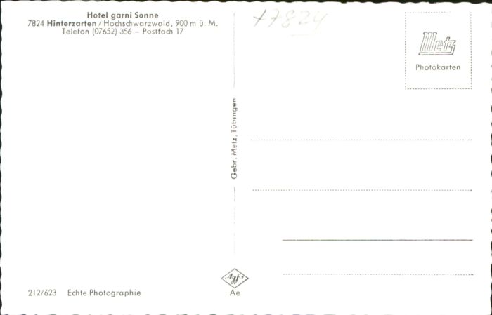 40769788 Hinterzarten Breisgau-Hochschwarzwald BW Hotel Garni Sonne postalisch nicht gelaufen Alte Ansichtskarte Postkarte Katcode 11110008315052