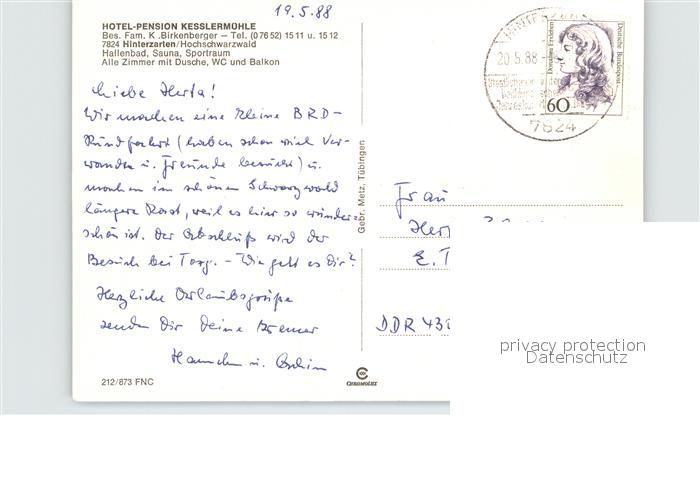 72612489 alte Postkarte Hinterzarten Breisgau-Hochschwarzwald BW Hotel Pension Kesslermuehle postalisch gelaufen Erhaltung siehe scans [AndreD76] KatCode: 11110008315052