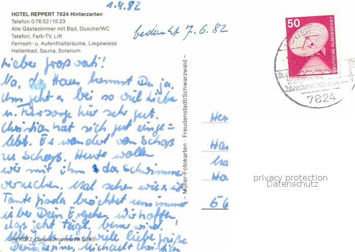72752684 alte Postkarte Hinterzarten Breisgau-Hochschwarzwald BW Hotel Reppert postalisch gelaufen Erhaltung siehe scans [LiesaD40] KatCode: 11110008315052