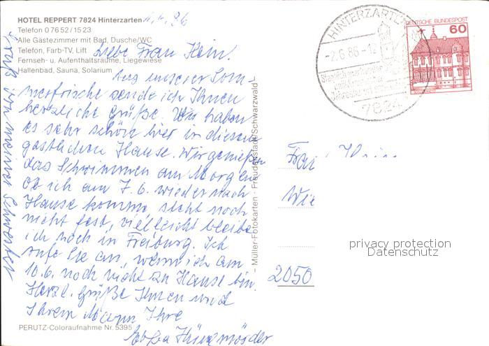 71931266 alte Postkarte Hinterzarten Breisgau-Hochschwarzwald BW Hotel Reppert postalisch gelaufen KatCode: 11110008315052
