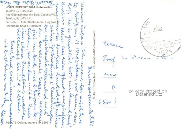 73005241 alte Postkarte Hinterzarten Breisgau-Hochschwarzwald BW Hotel Reppert postalisch gelaufen Erhaltung siehe scans [WerneD78] KatCode: 11110008315052
