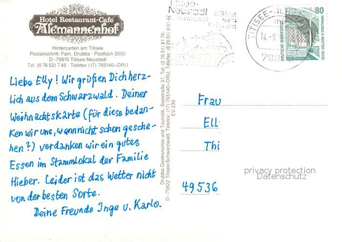 73788433 Hinterzarten Breisgau-Hochschwarzwald BW Hotel Restaurant Alemannenhof Terrasse postalisch gelaufen Erhaltung siehe scans [WerneD78] alte Postkarte Wern Katcode 11110008315052