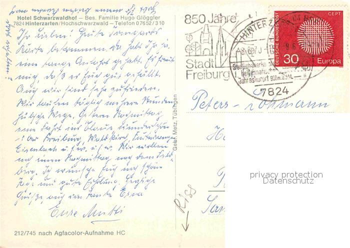 72682702 alte Postkarte Hinterzarten Breisgau-Hochschwarzwald BW Hotel Schwarzwaldhof Hugo Gloeggler postalisch gelaufen Erhaltung siehe scans [LiesaD40] KatCode: 11110008315052