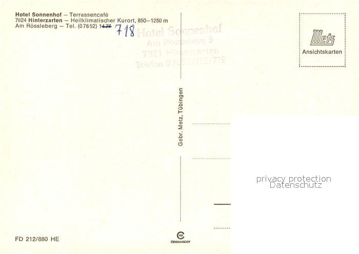 73247032 Hinterzarten Breisgau-Hochschwarzwald BW Hotel Sonnenhof Terrassencafe postalisch nicht gelaufen Erhaltung siehe scans [KathaD81] KatCode: 11110008315052