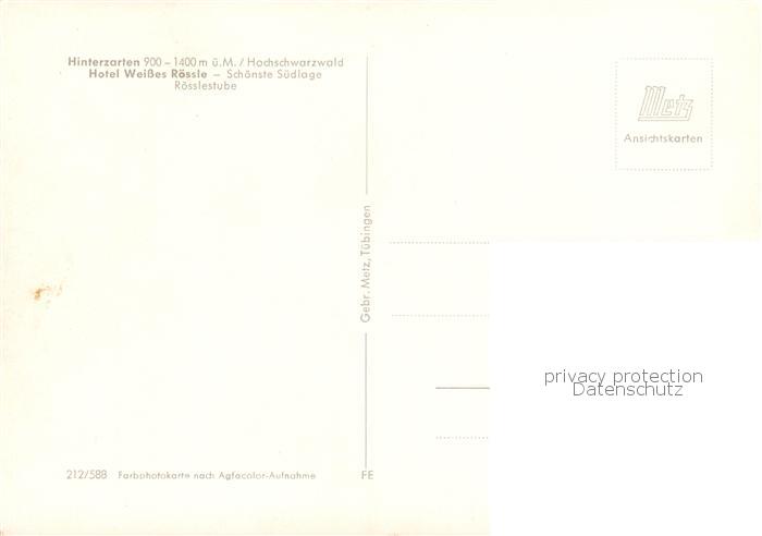 73846150 Hinterzarten Breisgau-Hochschwarzwald BW Hotel Weisses Roessle postalisch nicht gelaufen Erhaltung siehe scans [WerneD78] Wern Katcode 11110008315052