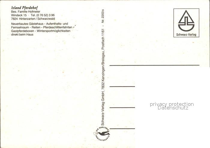 72443514 Hinterzarten Breisgau-Hochschwarzwald BW Island Pferdehof Islandponys Brotzeit Gaestezimmer postalisch nicht gelaufen Erhaltung siehe scans KatCode: 11110008315052