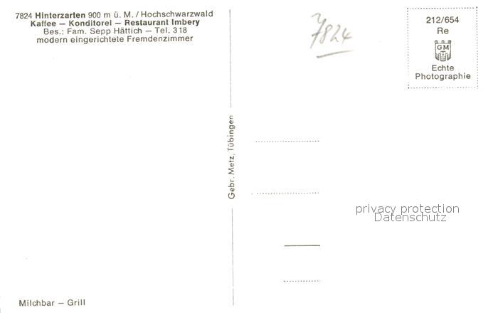 42957427 Hinterzarten Breisgau-Hochschwarzwald BW Kaffee Restaurant Imbery postalisch nicht gelaufen Erhaltung siehe scans [AndreD76] Andr Katcode 11110008315052