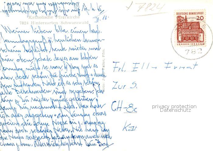 42958658 Hinterzarten Breisgau-Hochschwarzwald BW Katholische Pfarrkirche postalisch gelaufen Erhaltung siehe scans [AndreD76] alte Postkarte Andr Katcode 11110008315052