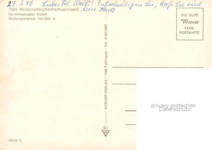 73040879 Hinterzarten Breisgau-Hochschwarzwald BW Kurort Wintersportplatz Feldberg Schwarzwald Fliegeraufnahme postalisch nicht gelaufen Erhaltung siehe scans [FriedD77] KatCode: 11110008315052