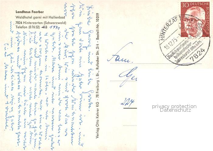 73024566 alte Postkarte Hinterzarten Breisgau-Hochschwarzwald BW Landhaus Faerber Winter postalisch gelaufen Erhaltung siehe scans [KathaD81] KatCode: 11110008315052