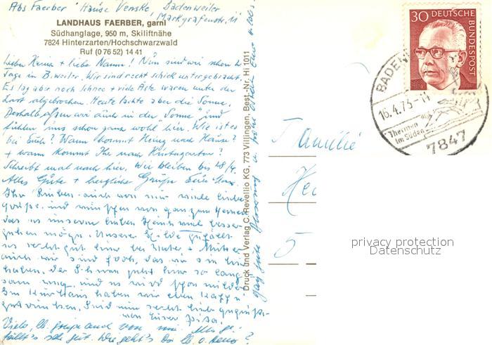 73024559 alte Postkarte Hinterzarten Breisgau-Hochschwarzwald BW Landhaus Faerber postalisch gelaufen Erhaltung siehe scans [KathaD81] KatCode: 11110008315052