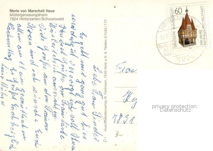 73718151 Hinterzarten Breisgau-Hochschwarzwald BW Marie von Marschall Haus Muettergenesungshei postalisch gelaufen Erhaltung siehe scans [WerneD78] alte Postkarte Wern Katcode 11110008315052