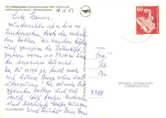 73083313 alte Postkarte Hinterzarten Breisgau-Hochschwarzwald BW Panorama postalisch gelaufen Erhaltung siehe scans [KathaD81] KatCode: 11110008315052