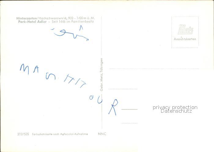 71909215 Hinterzarten Breisgau-Hochschwarzwald BW Park Hotel Adler postalisch nicht gelaufen Erhaltung siehe scans KatCode: 11110008315052