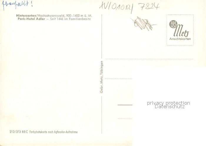 73743668 Hinterzarten Breisgau-Hochschwarzwald BW Park Hotel Adler Kirche postalisch nicht gelaufen Erhaltung siehe scans [WerneD78] Wern Katcode 11110008315052